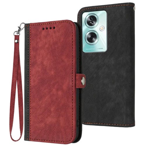 Para Oppo A79 Funda de Cuero para Teléfono con Correa de Mano con Doble Pliegue y Hebilla Lateral (Rojo)