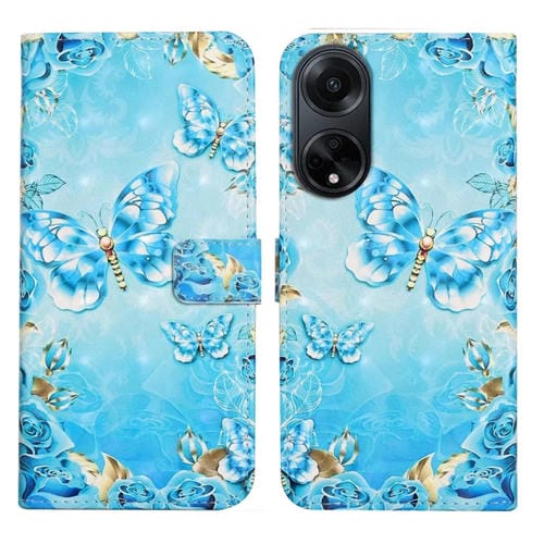 Para Oppo A98 5G Funda de Teléfono de Cuero con Dibujo 3D En Relieve al Óleo (Mariposas Azules)