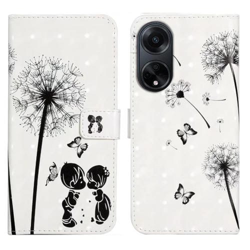Para Oppo A98 5G Funda de Teléfono de Cuero con Dibujo 3D En Relieve al Óleo (Pareja de Diente de León)