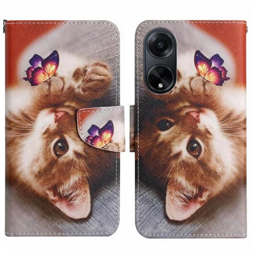 Para Oppo A98 Funda de Cuero para Teléfono con Patrón de Dibujo Coloreado (Gato Mariposa)