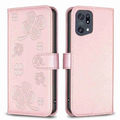 Para Oppo Find X5 Pro Funda de Cuero con Relieve de Cuatro Hojas para Teléfono (Rosa)