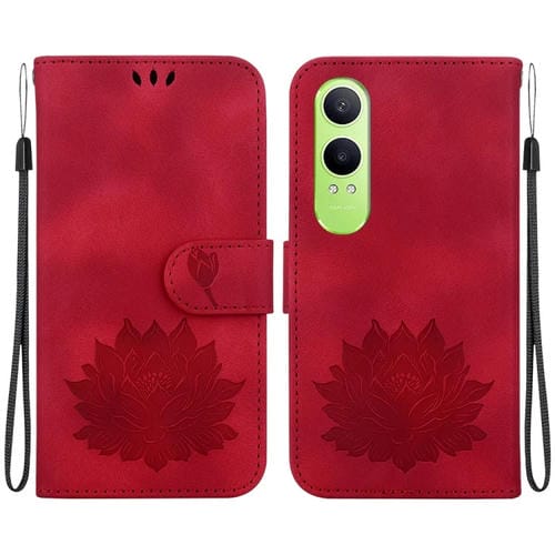 Para Oppo K12X Lotus Funda de Cuero En Relieve para Teléfono (Rojo)