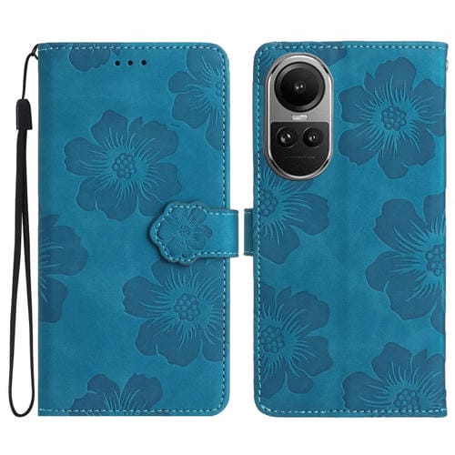 Para Oppo Reno10 5G / Reno10 Pro 5G Funda de Cuero para Teléfono con Estampado de Flores Globales (Azul)