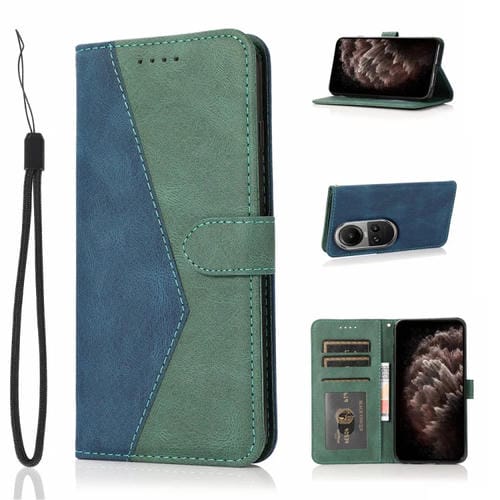Para Oppo Reno10 5G / Reno10 Pro 5G Funda de Teléfono de Cuero con Costuras de Dos Colores Globales (Azul Verde)