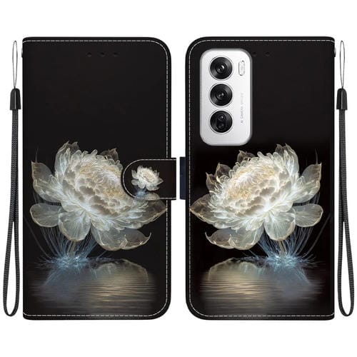 Para Oppo Reno12 5G Funda de Teléfono de Cuero con Dibujo Coloreado con Textura de Cristal Global (Peonía de Cristal)