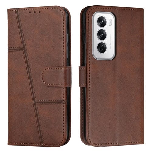 Para Oppo Reno12 5G Funda de Teléfono de Cuero con Hebilla y Textura de Pantorrilla con Costura Global (Marrón)