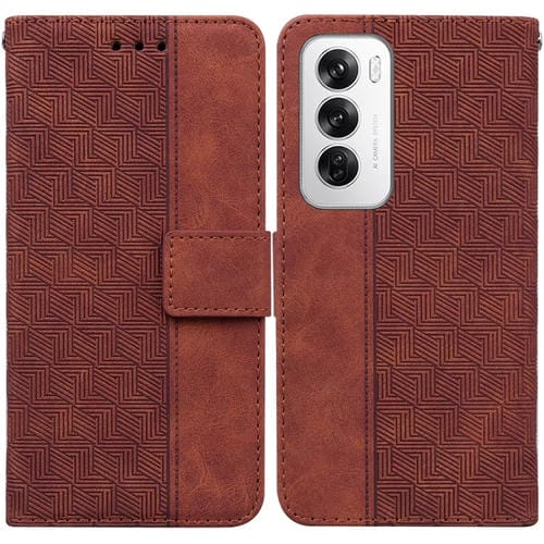 Para Oppo Reno12 5G Funda de Teléfono de Cuero con Relieve Geométrico Global (Marrón)