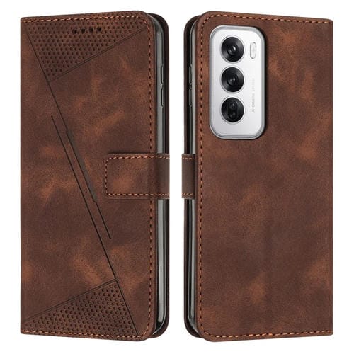 Para Oppo Reno12 5G Global Dream Triangle Funda de Cuero para Teléfono con Cordón (Marrón)