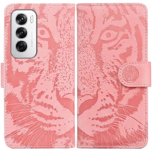 Para Oppo Reno12 5G Global Tiger Embossed Pattern Funda de Cuero con Tapa para Teléfono (Rosa)