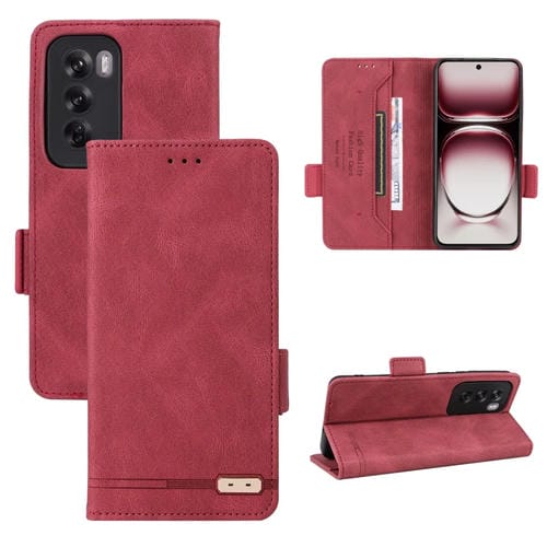 Para Oppo Reno12 Funda de Cuero para Teléfono con Cierre Magnético Global (Rojo)