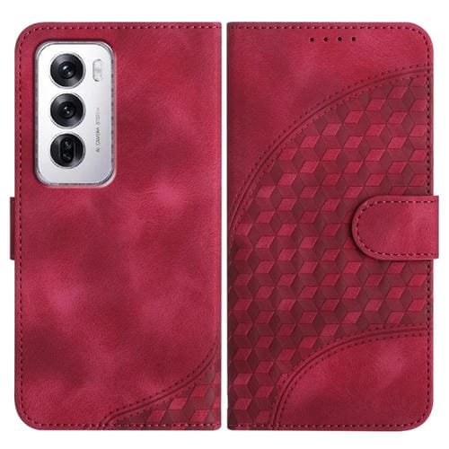 Para Oppo Reno12 Global Yx0060 Funda de Cuero para Teléfono con Relieve y Cabeza de Elefante con Cordón (Rojo Rosa)