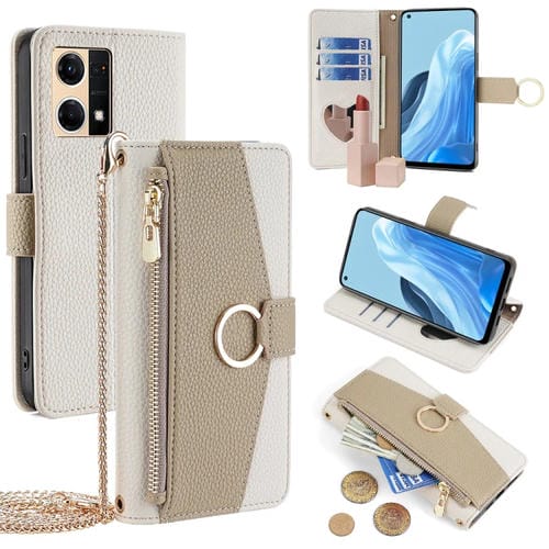 Para Oppo Reno7 4G / F21 Pro 4G Funda para Teléfono de Cuero con Textura Litchi Cruzada (Blanco)