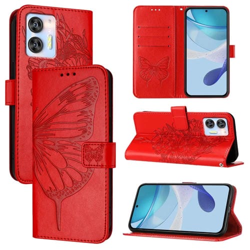 Funda de Cuero para Oukitel C36 y C35 con Mariposa en Relieve (Rojo)