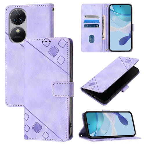 Funda de Cuero para Oukitel C38 Skin Feel con Relieve (Púrpura Claro)