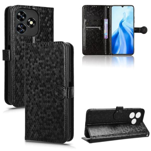 Funda de Cuero para Oukitel C51 con Textura de Punto de Panal (Negro)