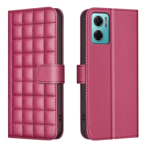 Para Redmi 10 5G / Note 11E Funda de Cuero para Teléfono con Textura Cuadrada (Rojo)