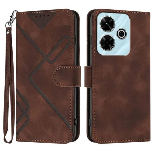 Para Redmi 13 4G Line Pattern Skin Feel Funda de Cuero para Teléfono (Café)
