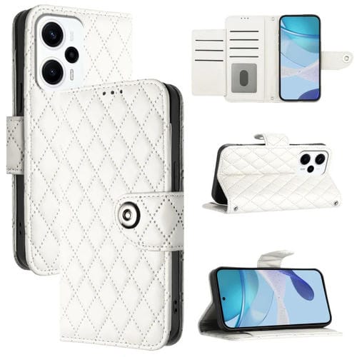 Para Redmi K50I Funda de Cuero con Tapa con Textura Rómbica y Cordón (Blanco)