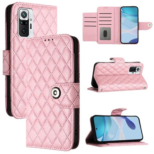 Para Redmi Note 10 Pro / Note 10 Pro Max Funda para Teléfono de Cuero con Tapa con Textura Rómbica y Cordón (Rosa)