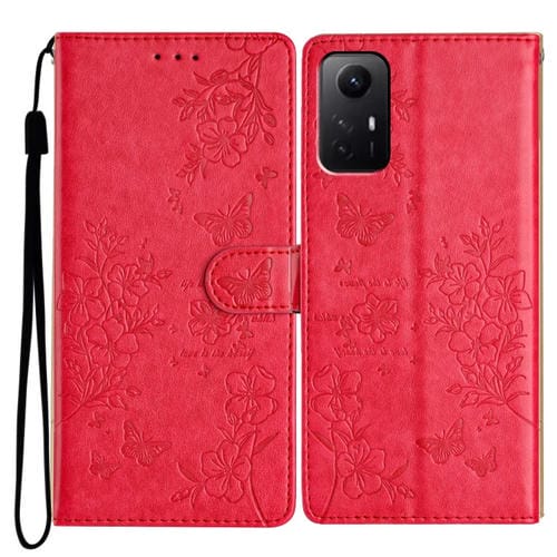 Para Redmi Note 12S Funda de Cuero para Teléfono con Mariposas y Flores (Rojo)