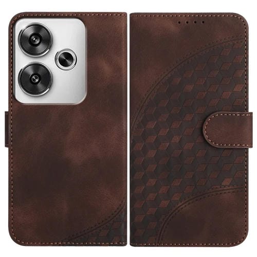 Para Redmi Turbo 3 / Xiaomi Poco F6 Yx0060 Funda de Cuero para Teléfono con Relieve y Cabeza de Elefante con Cordón (Café)