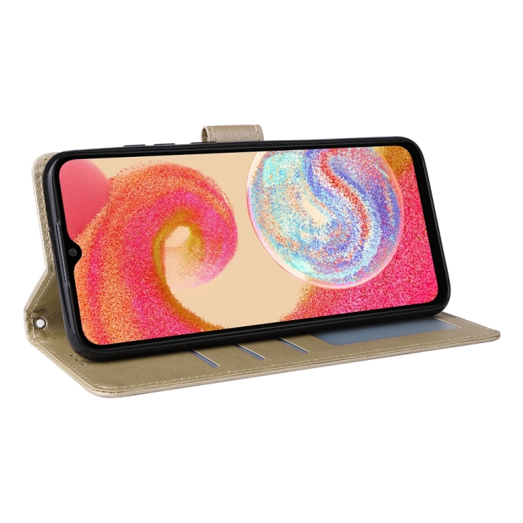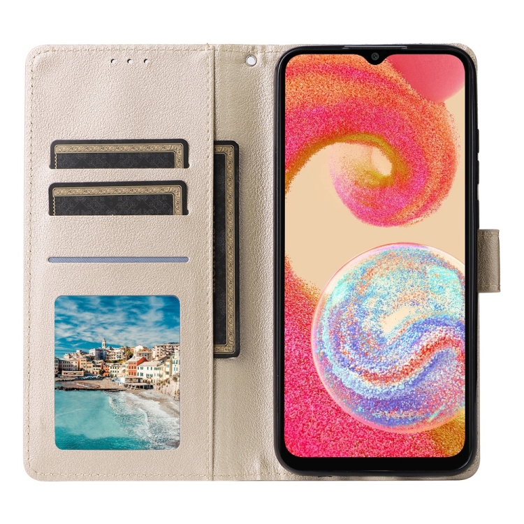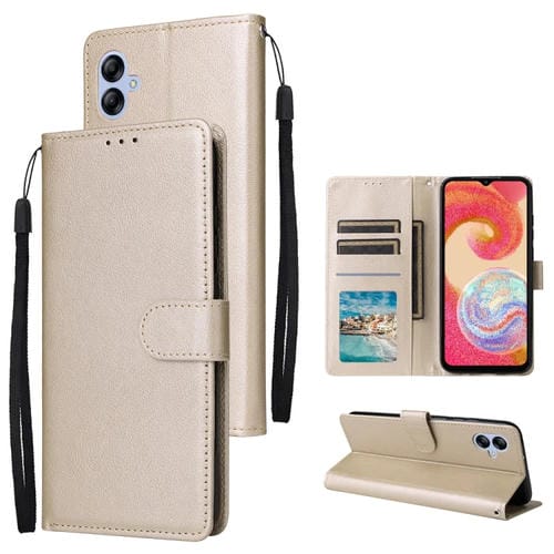 Funda de Cuero Samsung Galaxy A04E Multifuncional con 3 Ranuras para Tarjetas (Dorado)