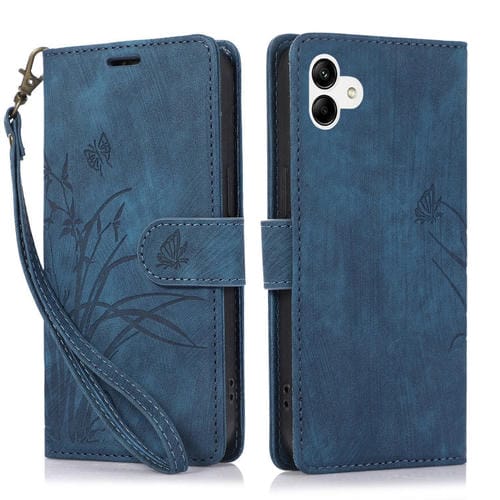 Funda para Teléfono Samsung Galaxy A05 4G Cuero Relieve Mariposa Orquídea (Azul)
