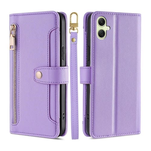 Funda para Samsung Galaxy A05 4G Lite Cuero con Billetera, Cremallera y Textura de Oveja (Púrpura)