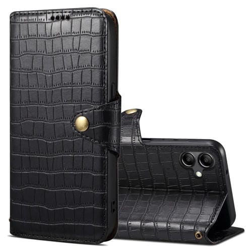 Funda para Teléfono Samsung Galaxy A05 Denior Cuero Borde de Aceite Textura Cocodrilo (Negro)