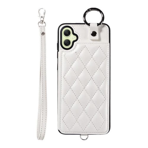 Estuche para Teléfono Samsung Galaxy A05 con Bolsa para Tarjetas Textura Rómbica y Cordón Corto (Blanco)