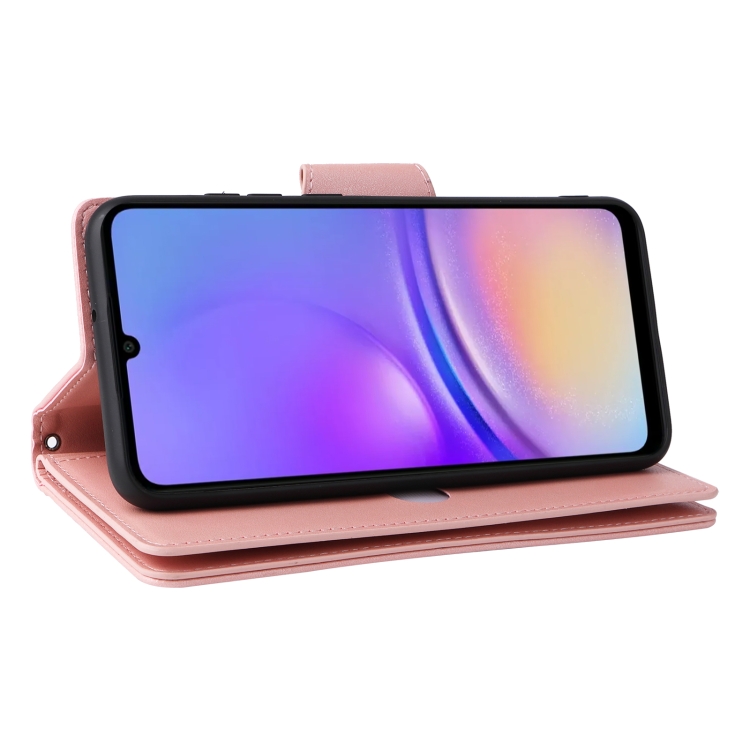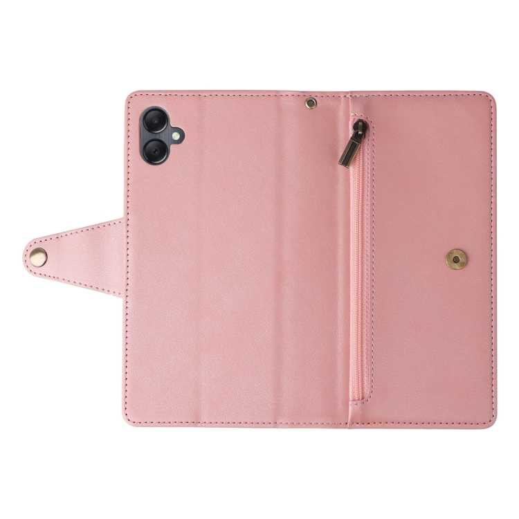 Funda para Samsung Galaxy A05 Rivet Buckle con 9 Tarjetas de Cuero y Tres Pliegues (Oro Rosa)