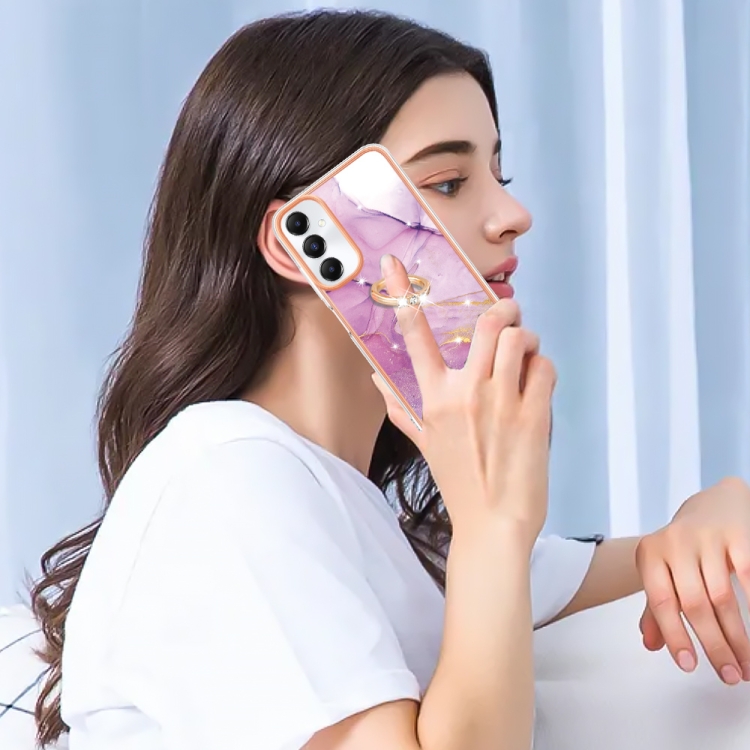 Funda para Samsung Galaxy A05S Imd TPU Mármol Galvanizado con Soporte para Anillo (Púrpura)