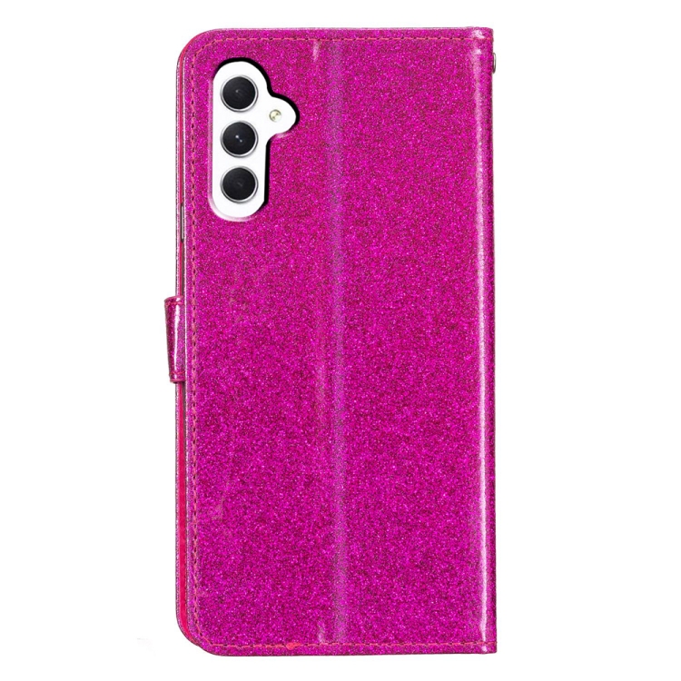 Funda de Cuero para Samsung Galaxy A05S con Tapa y Purpurina en Polvo (Rojo Rosa)