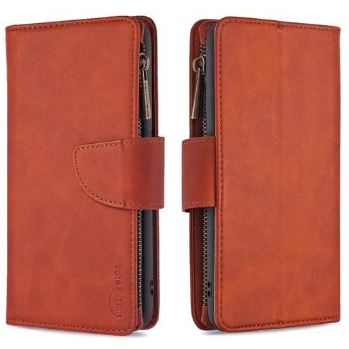 Estuche para Samsung Galaxy A10 M10 Skin Feel Cuero Pu Cremallera Magnética Desmontable Tapa Horizontal Ranuras Tarjetas Soporte Billetera Marco Fotos Cordón (Marrón)