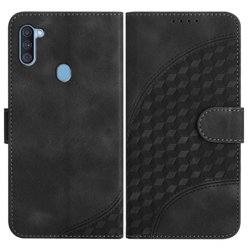 Funda de Cuero Samsung Galaxy A11 Versión UE Yx0060 con Relieve de Cabeza de Elefante y Cordón (Negro)