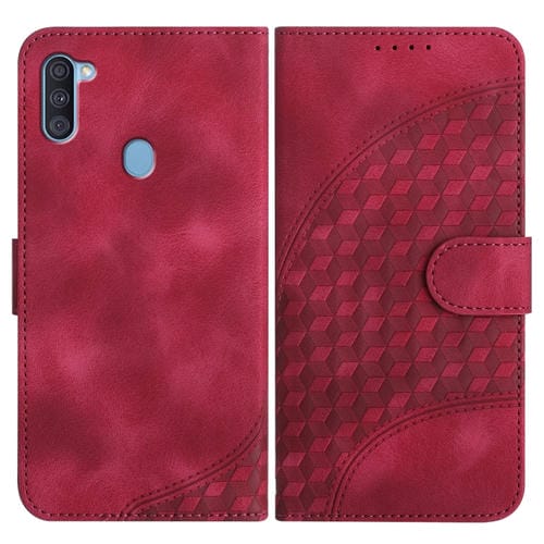 Funda de Cuero Samsung Galaxy A11 Versión UE Yx0060 con Relieve de Cabeza de Elefante y Cordón (Rojo Rosa)