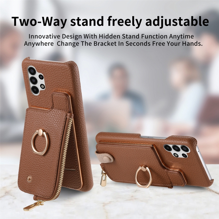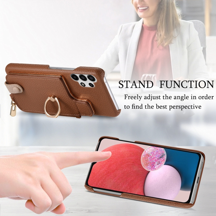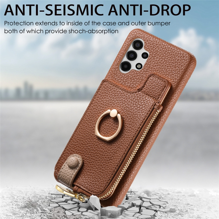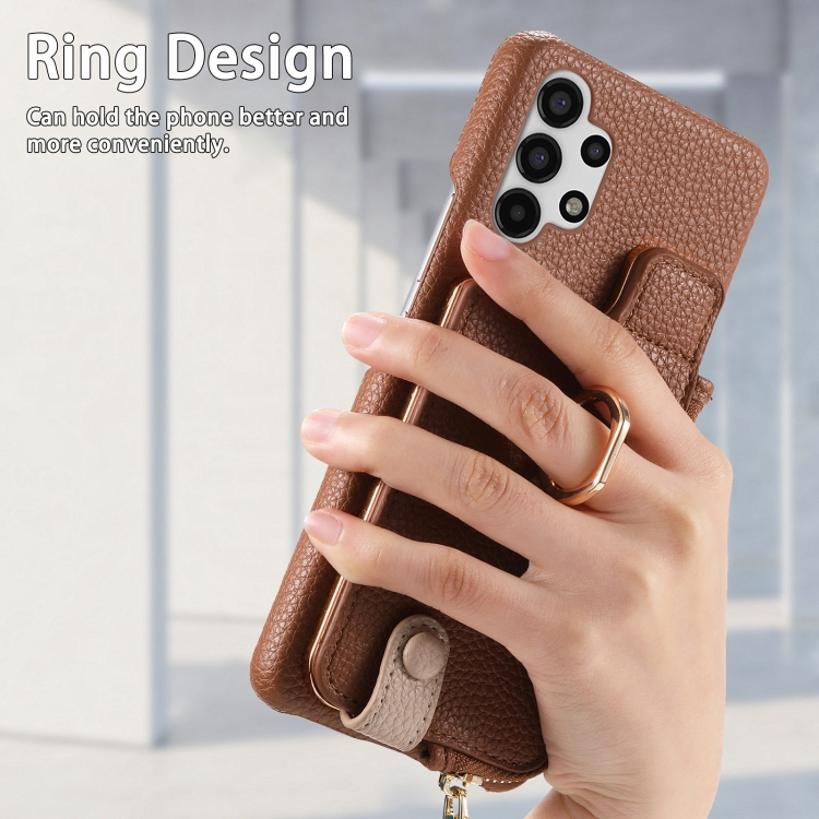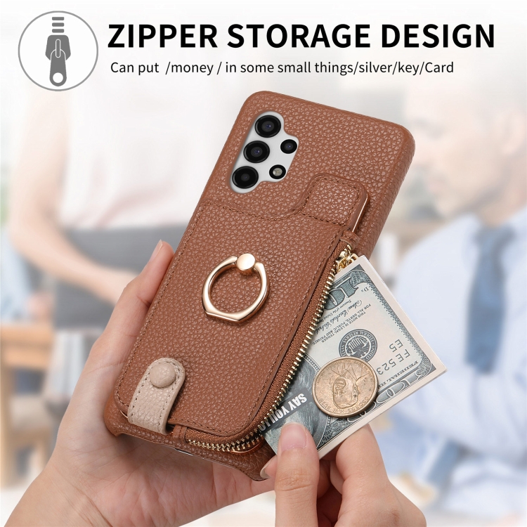 Funda para Samsung Galaxy A13 4G Litchi Leather Oil Edge Ring Zipper Wallet Back (Marrón)