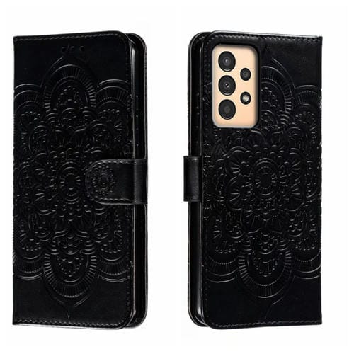 Funda de Cuero Samsung Galaxy A13 Sun Mandala con Patrón en Relieve (Negro)