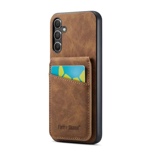 Funda para Samsung Galaxy A15 Fierre Shann Crazy Horse Titular de Tarjeta Contraportada Pu (Marrón)