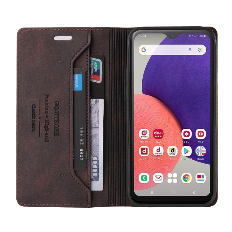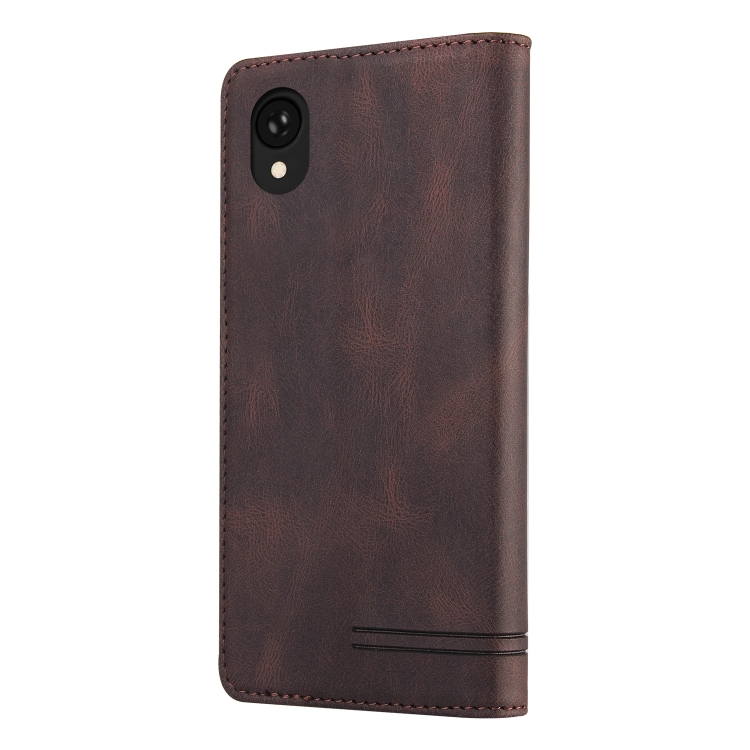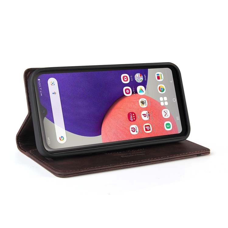 Funda de Cuero para Samsung Galaxy A22 5G Versión Jp Skin Feel con Tapa Horizontal Cepillo Antirrobo y Soporte (Marrón)