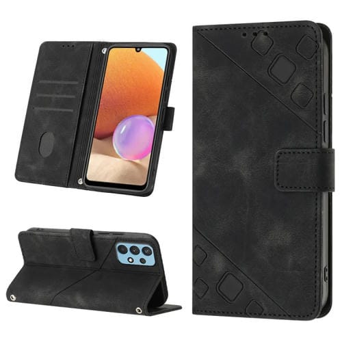 Estuche para Teléfono Samsung Galaxy A32 4G Cuero En Relieve con Tacto de Piel (Negro)