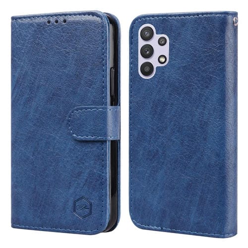 Funda para Teléfono Samsung Galaxy A32 4G Sensación de Piel Textura de Cuero Aceitoso Pu + TPU (Azul Oscuro)