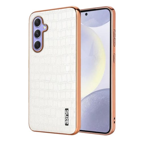 Estuche para Teléfono Samsung Galaxy A34 Azns Textura de Cocodrilo con Marco Galvanizado (Blanco)