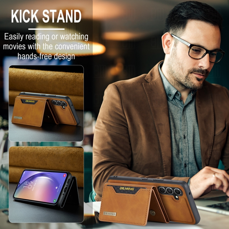 Bolsa para Múltiples Tarjetas 3 Pliegues + Funda Magnética para Samsung Galaxy A35 5G Dg.Ming M2 Series (Marrón)