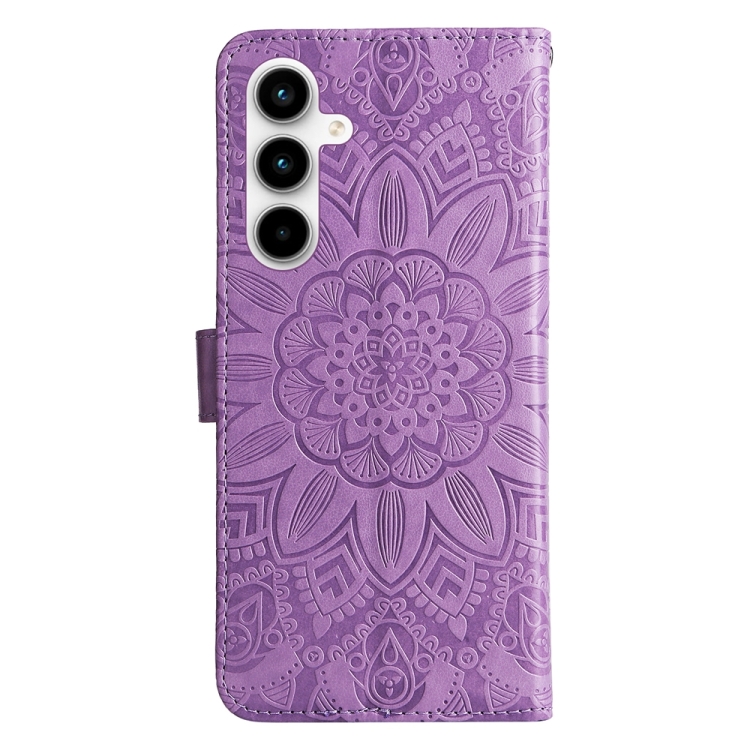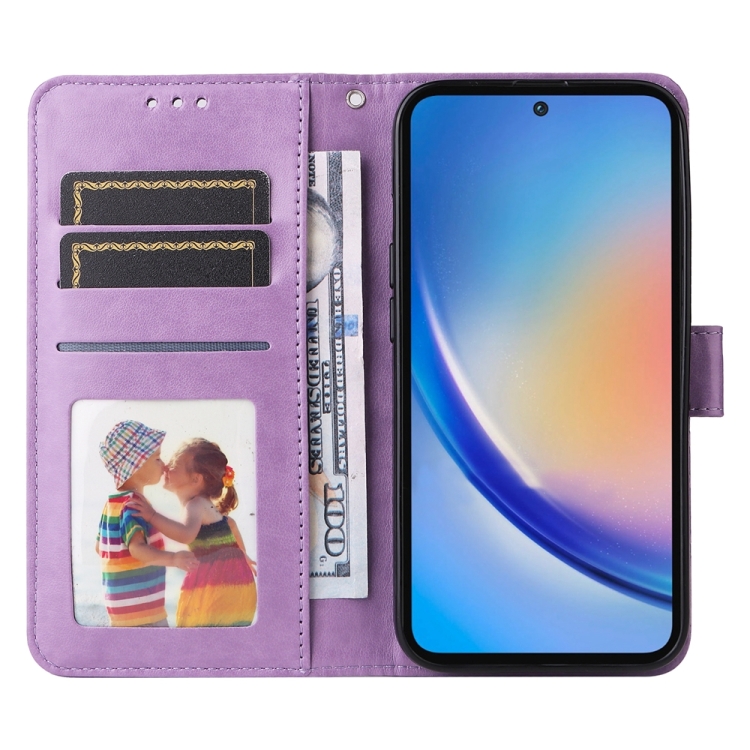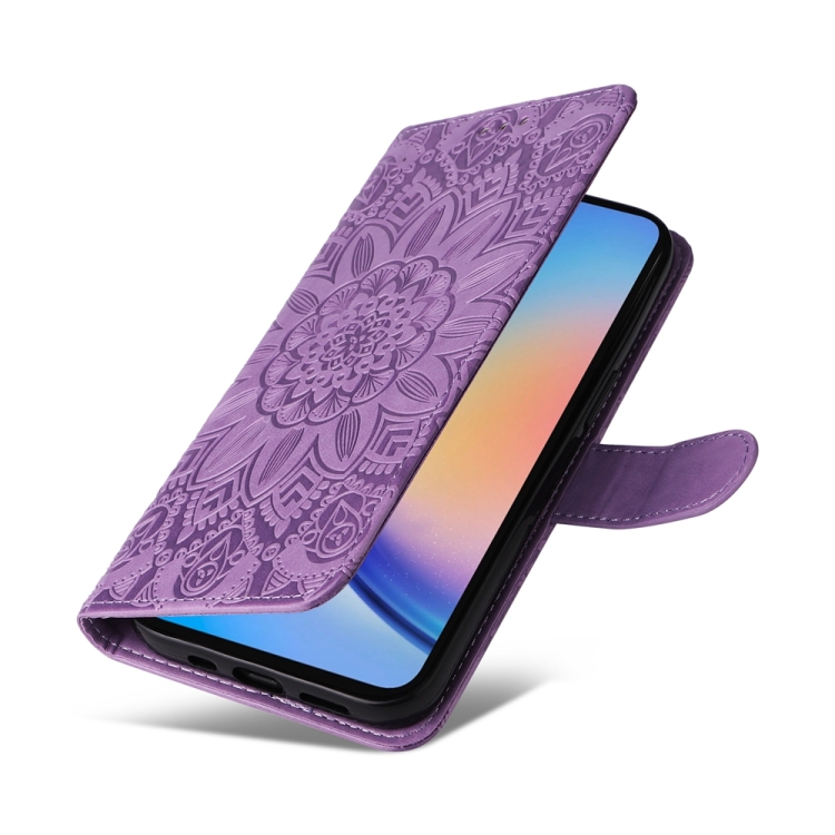 Funda de Cuero Samsung Galaxy A35 con Girasol en Relieve (Púrpura)