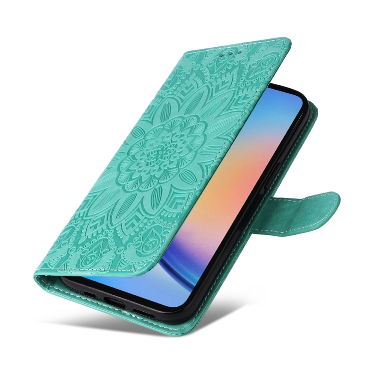 Funda para Teléfono Samsung Galaxy A35 Cuero con Girasol en Relieve (Verde)
