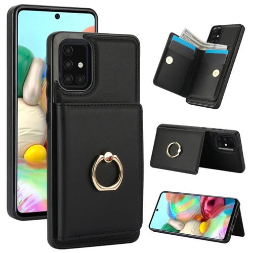 Estuche para teléfono Samsung Galaxy A51 4G Rfid Tarjeta Antirrobo con Soporte para Anillo (Negro)