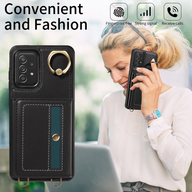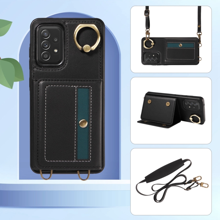 Funda de Cuero Crossbody Wallet Bag con Ring Holder para Samsung Galaxy A52 5G / 4G (Negro)