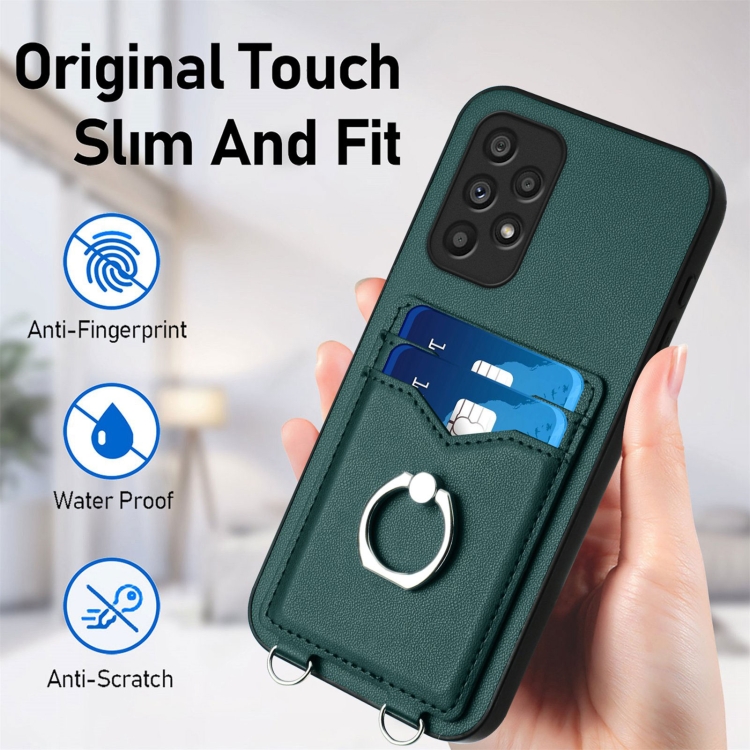 Estuche para Teléfono Samsung Galaxy A53 5G R20 con Soporte para Tarjeta y Anillo (Verde)