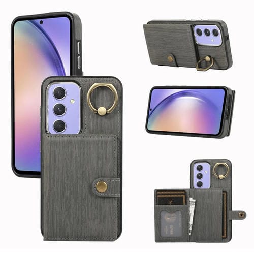 Funda para Teléfono Samsung Galaxy A54 5G con Soporte para Anillo y Billetera con Textura Cepillada (Gris)
